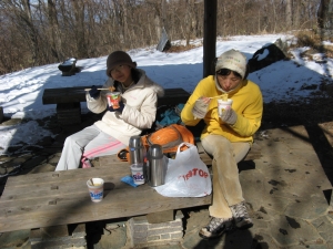 皇鈴山の東屋で昼食にした。風があって寒かったが、とても気分が良かった。