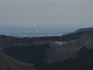 笠山の向うに早朝には見えなかった新宿のビル群が見えた。
