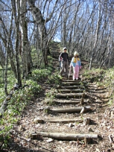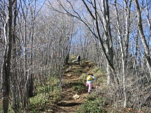 見晴らし小屋から少し下って、また登りが続く。周りはブナやイヌブナの木がたくさんあった。