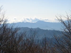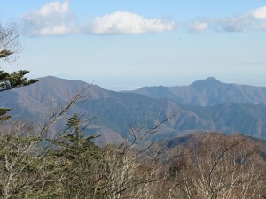 富士山の反対側、北東方面もよく見えた。中央は鷹ノ巣山、左端には日陰名栗峰。右奥は七跳山だろうか。