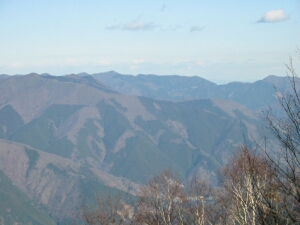 さらに東の方へ目を向けると、六ツ石山、日向沢ノ峰、川乗山などが続き、御前山まで見える。