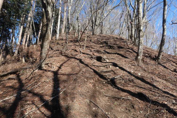 再び尾根上の道になると、ゆるやかな上り基調が続いた。