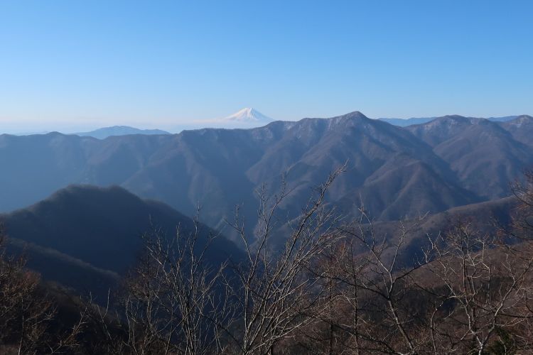 南側の富士山。左に御前山、右には六ッ石山から鷹ノ巣山まで続く石尾根。