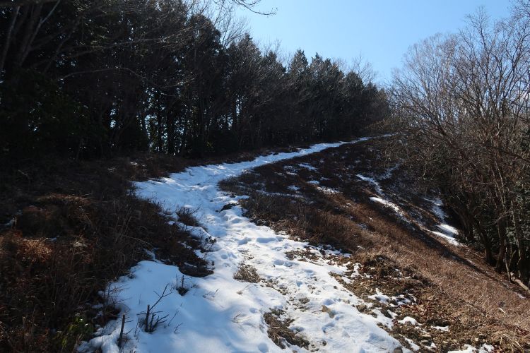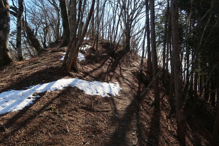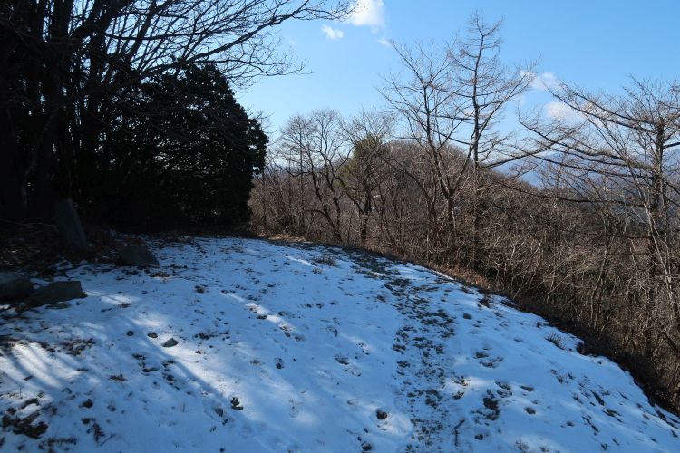 曲ヶ谷北峰の手前は少し雪が残っていた。