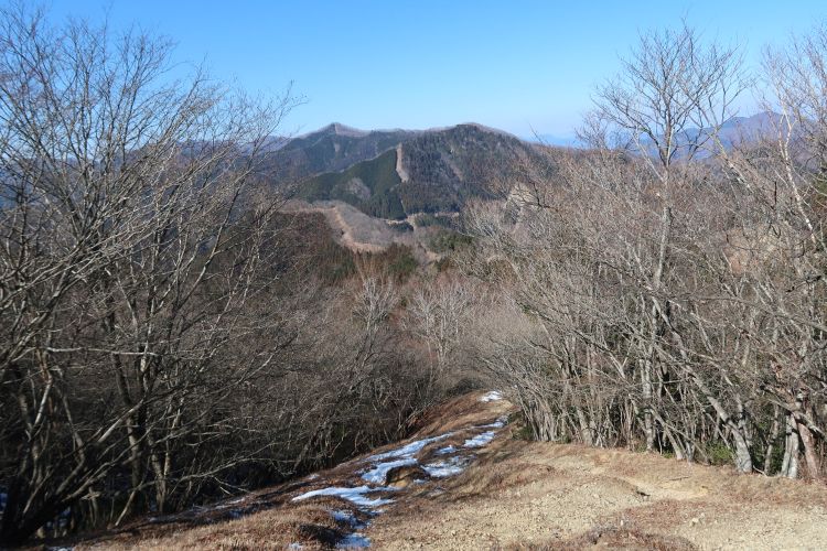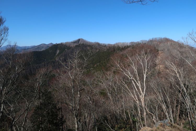 川苔山へ向かう樹間から、三ツドッケと蕎麦粒山が見えた。