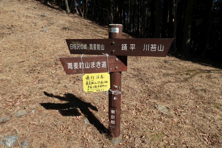 3時40分起床、4時15分出発。町営氷川駐車場には6時5分に到着した。バスで東日原まで移動して、三ツドッケから蕎麦粒山、日向沢ノ峰、川苔山と縦走して、古里駅に下山した。川苔山の山頂は混んでいたが、それ以外で見かけた登山者は数えるほどで、静かな山歩きを満喫できた。積雪は陽の当たらない北側斜面に少しある程度で、ルート上ではほとんど見られなかった。初めて歩いた日向沢ノ峰から川苔山の間は、思ったよりも鞍部が深くなくて楽に上り返せたが、赤杭尾根の下りはとても長く感じた。