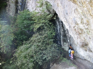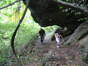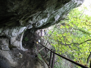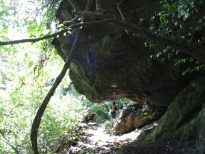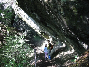鉄階段で岩稜を越えると、また巨大な岩の庇があった。