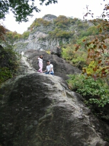 一人で上のくさり場を登ってみたものの、正直びびりました。写真の人がいるのは「天狗のひようてい」という所。