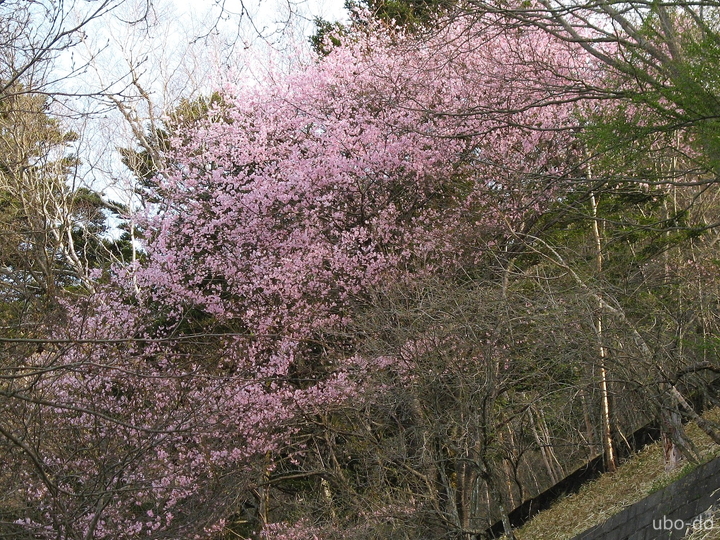 車道の脇にはヤマザクラが咲いていた。