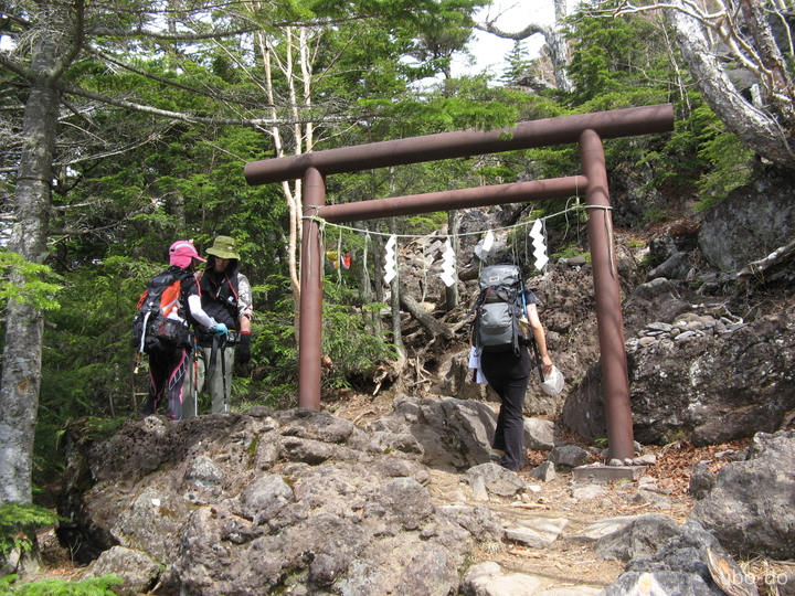 赤い鳥居が八合目かと思ったが、まだ先だった。