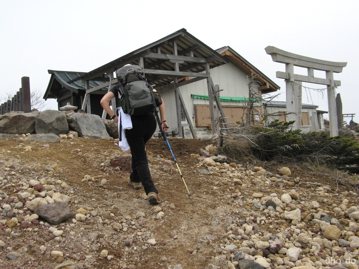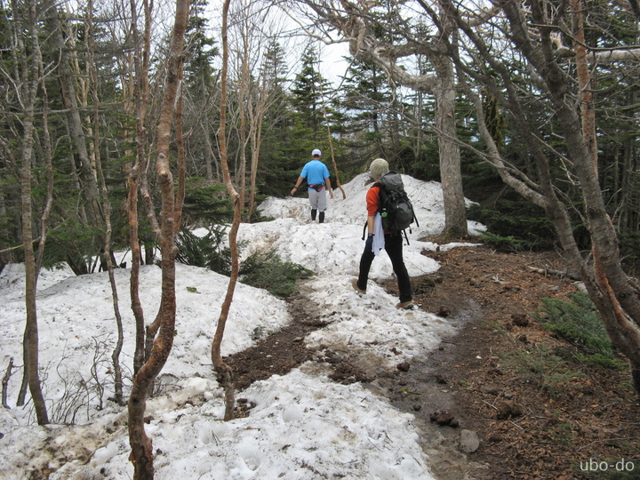 八合目を過ぎると傾斜がゆるくなった。ところどころに雪が残っていたが、アイゼンの必要はなかった。