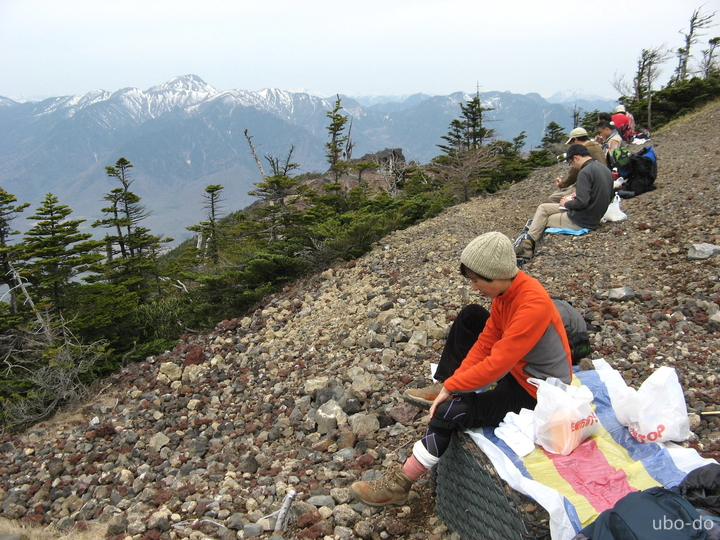 山頂部に戻って食事にした。
