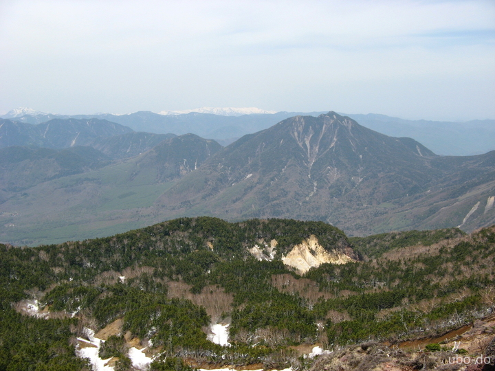 北方面。左端に燧ケ岳、中央に真っ白な会津駒ケ岳、右手前は太郎山。