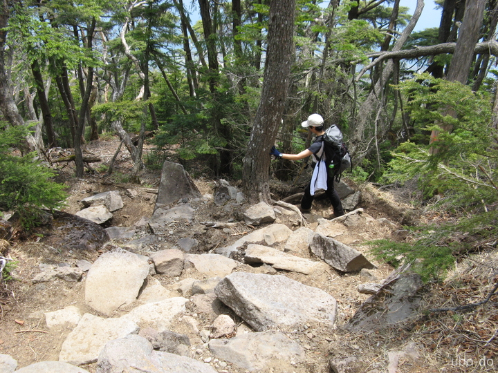 よく上ったと思うくらい延々と下りが続く。ガレ場の急坂がとても長く感じられた。