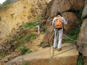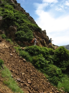 ガレ場を下って鎖場をトラバースしていく。