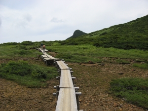 清水平の木道を歩く。解放感あふれる木道が続いた。