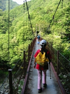 しばらく歩くと二俣吊り橋。