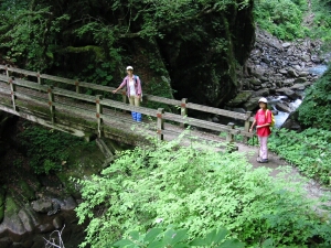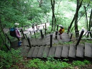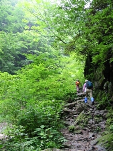 左手に沢を眺めながら遊歩道を進む。川の冷たい流れに冷やされた空気が、なんとも気持いい。