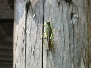迂回路分岐付近の芝はバッタだらけだった。見事な飛行を見せてくれたのは、クルマバッタだろうか。