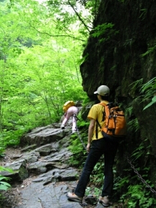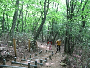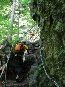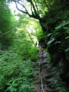 ゴツゴツした岩の登りもあるが、山道には鎖のてすりなどがあり、良く整備されている。
