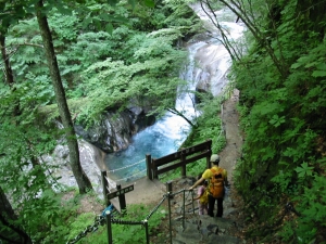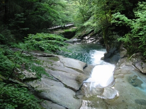 | ルート所要時間 | 村営無料駐車場6:40→迂回路分岐7:05→二股吊り橋7:30→三重ノ滝7:50→貞泉ノ滝8:40→七ツ釜五段ノ滝9:30→9:55西沢渓谷終点10:20→大展望台10:45→山ノ神11:20→迂回路分岐11:45→村営無料駐車場12:10 |