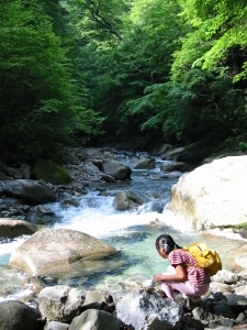 流れが冷たく綺麗なので、つい川の水に手が伸びる。