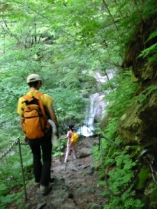 次々と続くを滝と心地よい沢の音を楽しみながら歩く。