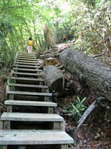 やっと迂回路分岐前の橋まできた。鶏冠山(たぶん)をバックに一枚。