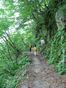 木が斜めに茂って谷底が見えないので、さほど怖くないが左側はずっと断崖絶壁。