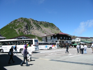 マイカー規制のため乗鞍観光センターで車を停め、ここでバスに乗り換え。