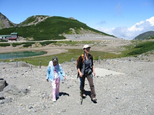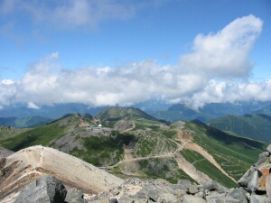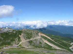 夏休み旅行初日は、乗鞍岳。当初は木曜出発の予定だったが、天気予報を考慮して、急きょ水曜出発に変更した。当日は朝2時すぎに目が覚めてしまったので、予定より早く4時に自宅を出た。 八王子インターまで長かったが、それ以降は順調に進み、9時過ぎに乗鞍高原に到着した。平日にもかかわらず、団体を含め登山客は多かった。片道1時間半ということで楽だと思っていたが、 高地だからかいつもより息切れを感じ、かなり疲れた。娘は頭が痛いと言っていたが、やはり空気が薄いせいだろう。旅行期間中、この日が一番の晴天だったので、水曜出発を前日に決めて正解だった。
