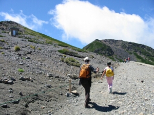肩の小屋から本格的な登山道となり、岩がごろごろして歩きづらくなる。