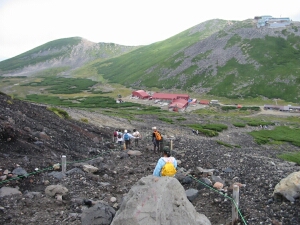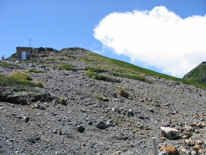 剣ヶ峰山頂の小屋がやっと見えてきたが、まだまだ遠い。