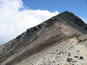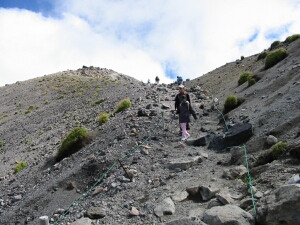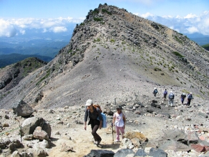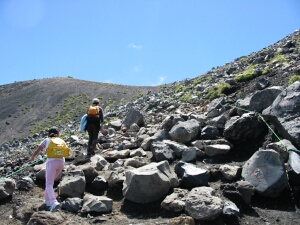 ジクザクに登る溶岩石の道は、那須の茶臼岳に似た雰囲気がある。