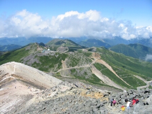 | ルート所要時間 | 乗鞍高原10:00-(バス)→畳平10:50→肩の小屋11:40→12:50剣ヶ峰山頂13:20→肩の小屋14:25→畳平14:55-(バス)→乗鞍高原15:50 |