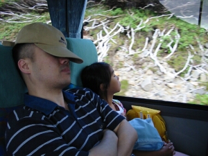 バスの中。曲がりくねった道を走るので、ほとんど寝れなかった。