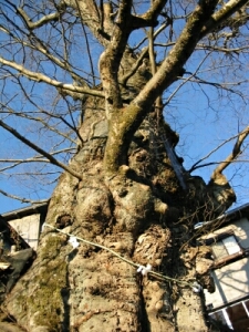 集落内にある「神代欅(ケヤキ)」。