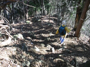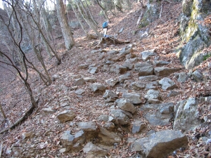 急な下りが延々続く。この道を上りでつかうのはかなり大変だろう。