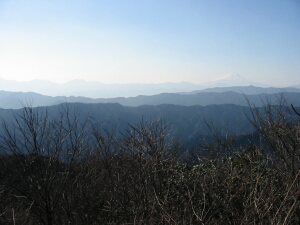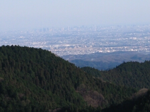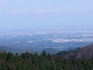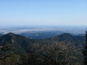 山頂は東京方面の展望が見事だった。手前は日の出山と麻生山。