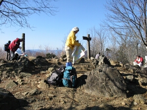 山頂に到着。思ったよりハイカーの姿が多く、アンテナを設置して無線をしている人もいた。