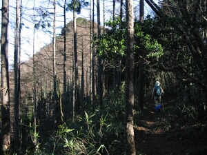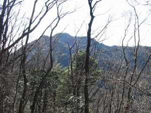 先へ進むと雑木の間から大岳山と思われる山が見えてきた。