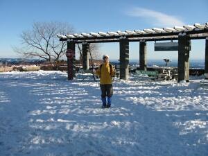 御岳神社からしばらく行くと、長尾平展望台への分岐がある。雪が深いので、大学生らしき2人組の足跡をたどる。