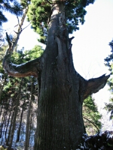 樹齢350年の「天狗の腰掛け杉」。かなりでかい。