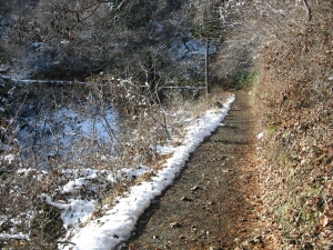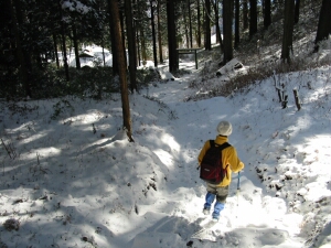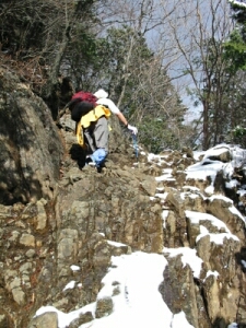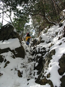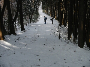 大岳神社からは急な坂が続く。雪の影響もあり、かなり疲れた。