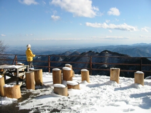 御岳山駅の裏が展望台になっていた。雪が多くてビックリ。