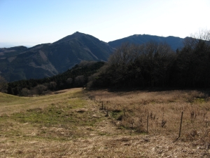 放牧地の脇に出ると、東側に筑波山がよく見えた。