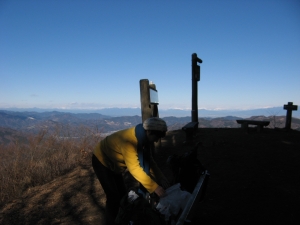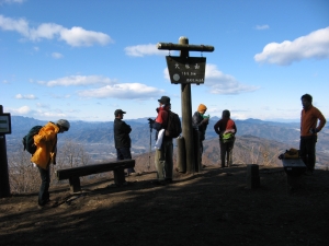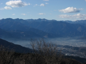 6時起床、7時15分出発。現地には8時40分に着いた。数日前から到来している寒波の影響でこの日も気温が低く、朝から晴れ渡っていた。山頂の展望は期待通りで、奥多摩・奥秩父はもちろん、榛名に赤城、谷川連峰や日光連山などの山並を、ずらりと眺め渡すことができた。山頂は日陰だったが、風がほとんどなかったので、それほど寒くはなかった。この日はいつも以上にハイカーの姿が多く、山頂は終始賑やかだった。眺めを十分楽しんでから下山開始、楽勝かと思っていたが、上り返しで多少疲れを感じた。