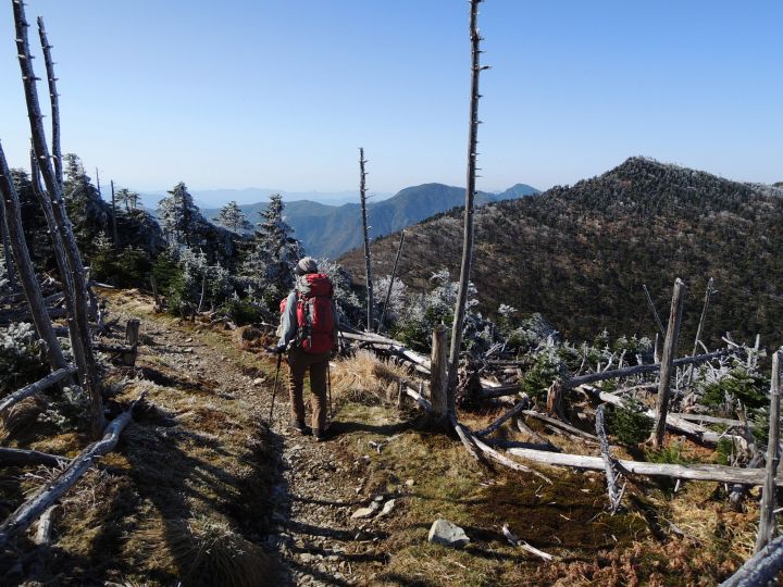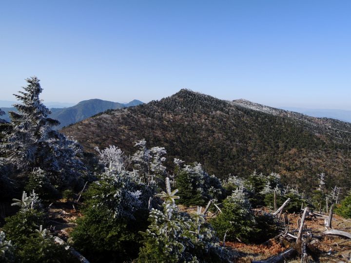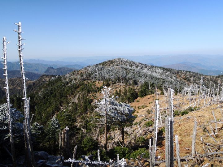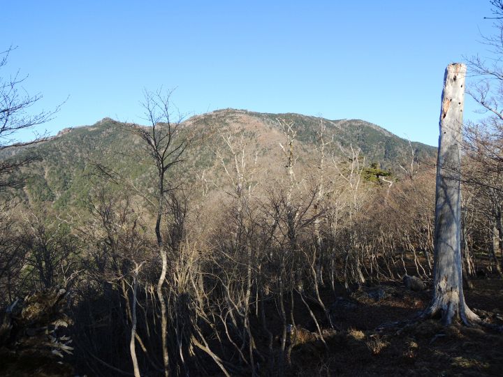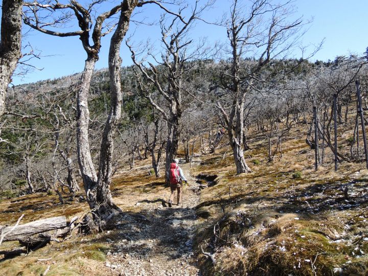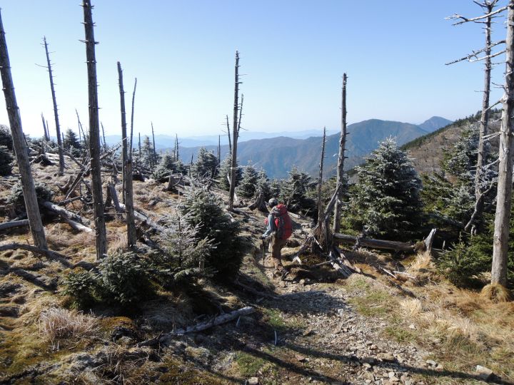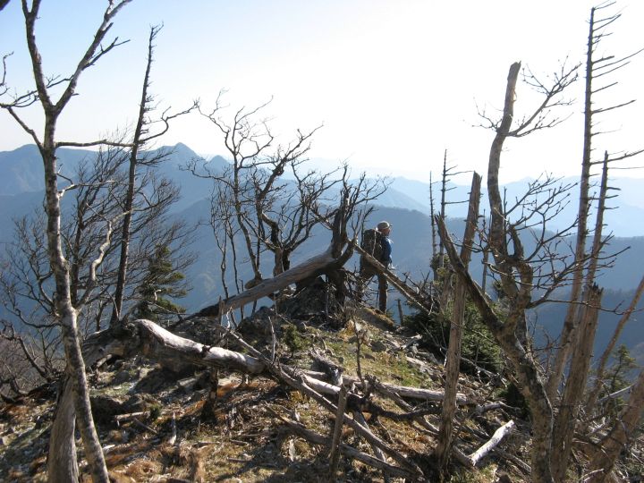 山頂付近は、シラビソやトウヒの立ち枯れが広範囲にひろがっていた。