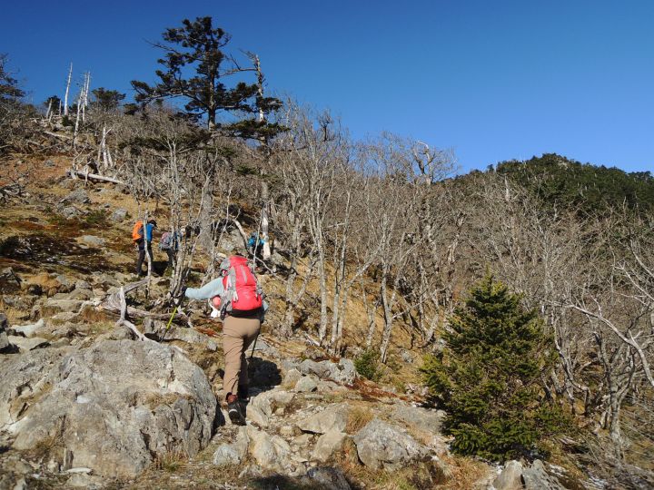 さらに上る。前日は小屋泊まりだったのか、下りてくる登山者と何度かすれ違った。