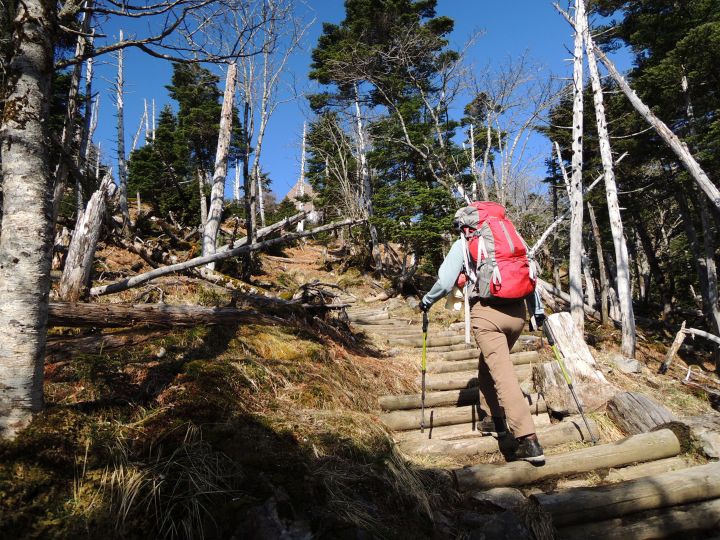 登山道はきちんと整備されていて、山頂近くは木段が多くなった。